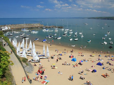 New Quay bay has three very different, beautiful and popular beaches. Harbour Beach is New Quay's main beach, tucked below the sloping terraces of the village and sheltered from the prevailing weather by the harbour wall. A designated Blue Flag beach, with clean, clear water, a designated safe swimming area and soft, fine sand, Harbour beach is a firm favourite with families. Walk along Traeth Gwyn at low tide and you'll be following in the footsteps of Dylan Thomas.