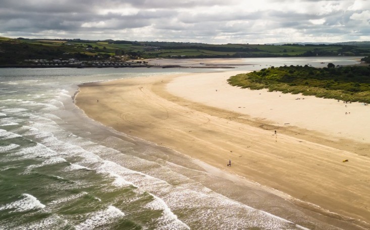 Accessed along a boardwalk through dunes, Poppit Sands beach is a flat and wide beach stretching around the dunes and up into the Teifi estuary.